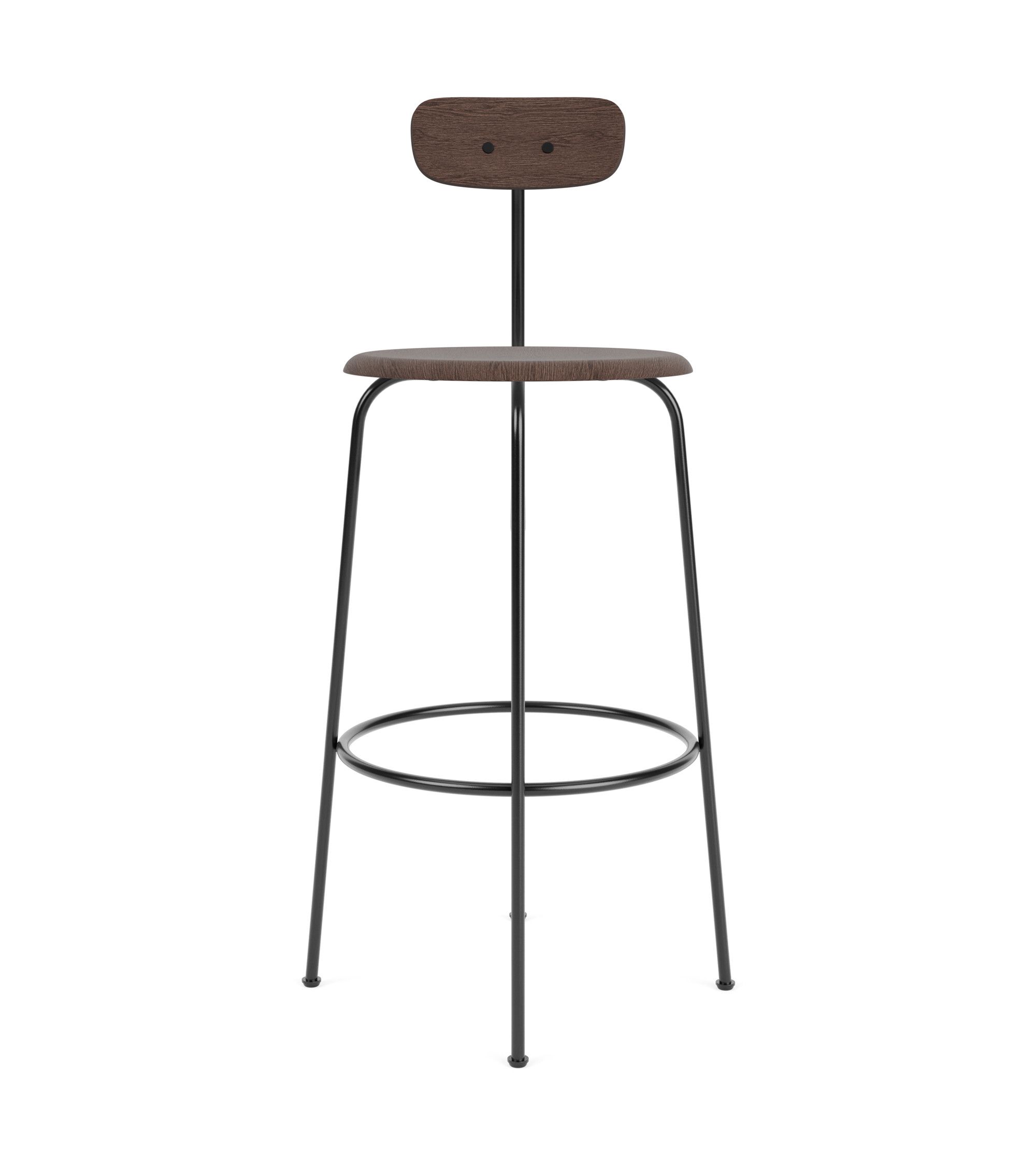 Embracing minimalism and clean lines without compromising on comfort the Afteroom Bar Chair is an elevated design for kitchen bars and high tables. Using the same innovative concept as the collections dining chairs the four-legged design reduces the material to a minimum while providing maximum support and stability. Seamlessly connecting to the wider collection the Afteroom Bar Chair in wood veneer provides a natural warm finish.