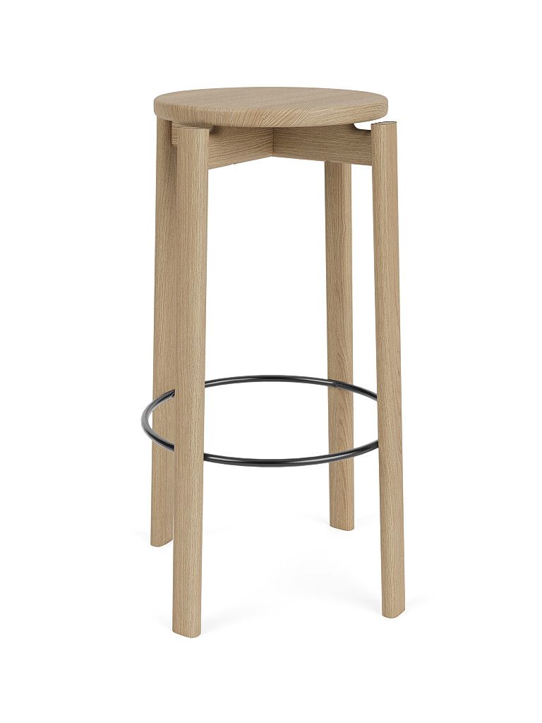 Looking to time-honoured Danish cabinetmaking traditions the Passage Bar Stool in walnut or natural oak showcases modern design and woodworking through traditional techniques. Crafted from solid walnut or FSC-certified solid oak with a lacquered finish the rich colour and luxurious grain pattern inherent to the high-quality hardwood ensure an enduring aesthetic. Thoughtfully designed a black or brushed brass foot ring ensures a comfortable seating experience for extended periods while the stools bar height aligns seamlessly with kitchens and other communal spaces making it a versatile design that effortlessly blends functionality with comfort. Its ingenious flat-pack construction encourages active participation in the assembly process.