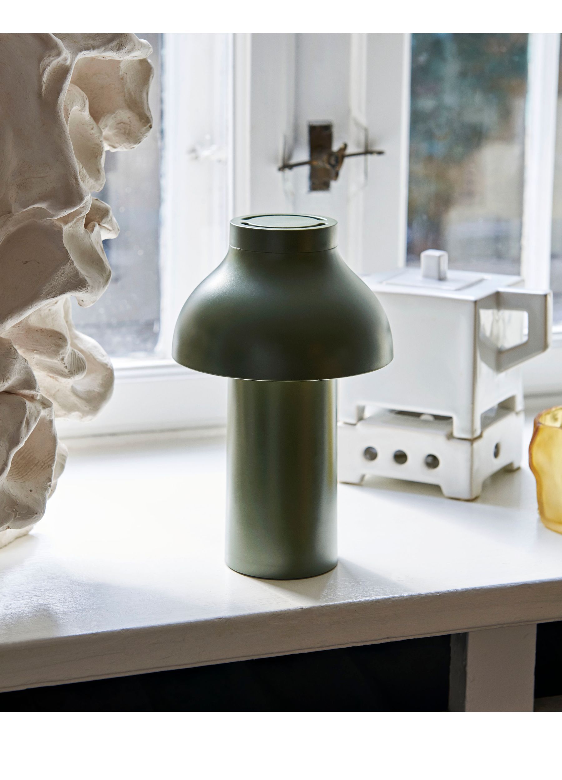 Pierre Charpin’s PC Portable Lamp is a refined, portable lamp for indoor and outdoor use. The lamp body and shade are made from 95% post-consumer recycled plastic with a matte scratch- and water- resistant finish, with a battery-powered design that gives the freedom and flexibility to move it anywhere. The concealed light source has a dimmable feature, offering users the possibility to select directional downlight or ambient light options. Available in versatile mono-colour designs or selected duo-tone combinations, the PC Portable Lamp is ideal for table lighting in numerous domestic environments, as well as at cafés, restaurants, and other public areas.